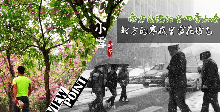北方的寒风里雪花纷飞,南方的艳阳里四季如春