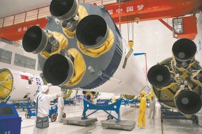 为火箭称完“体重”,十几名总装人员各就各位,用绣花般的功夫打磨着火箭上的每一个部位。